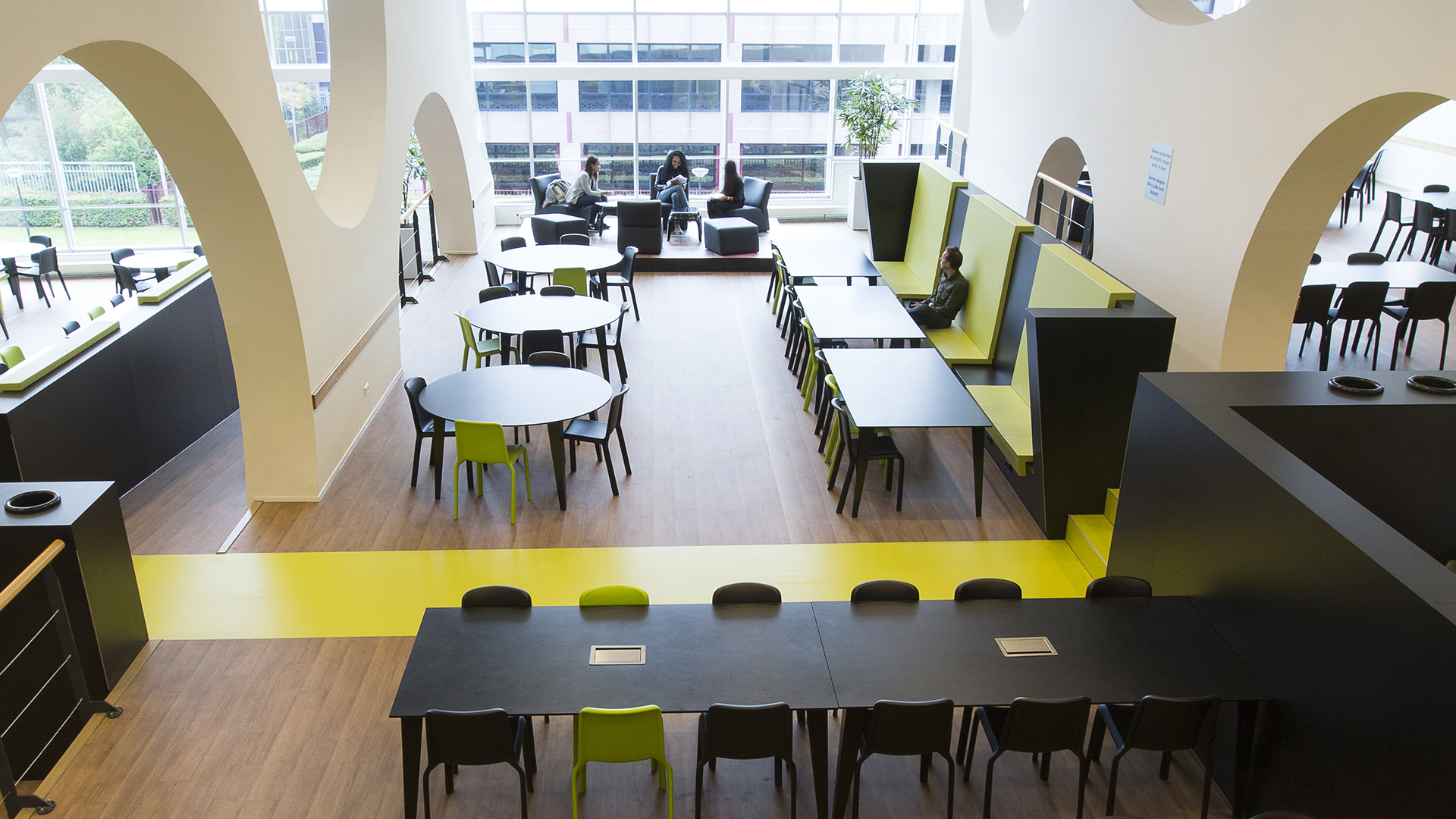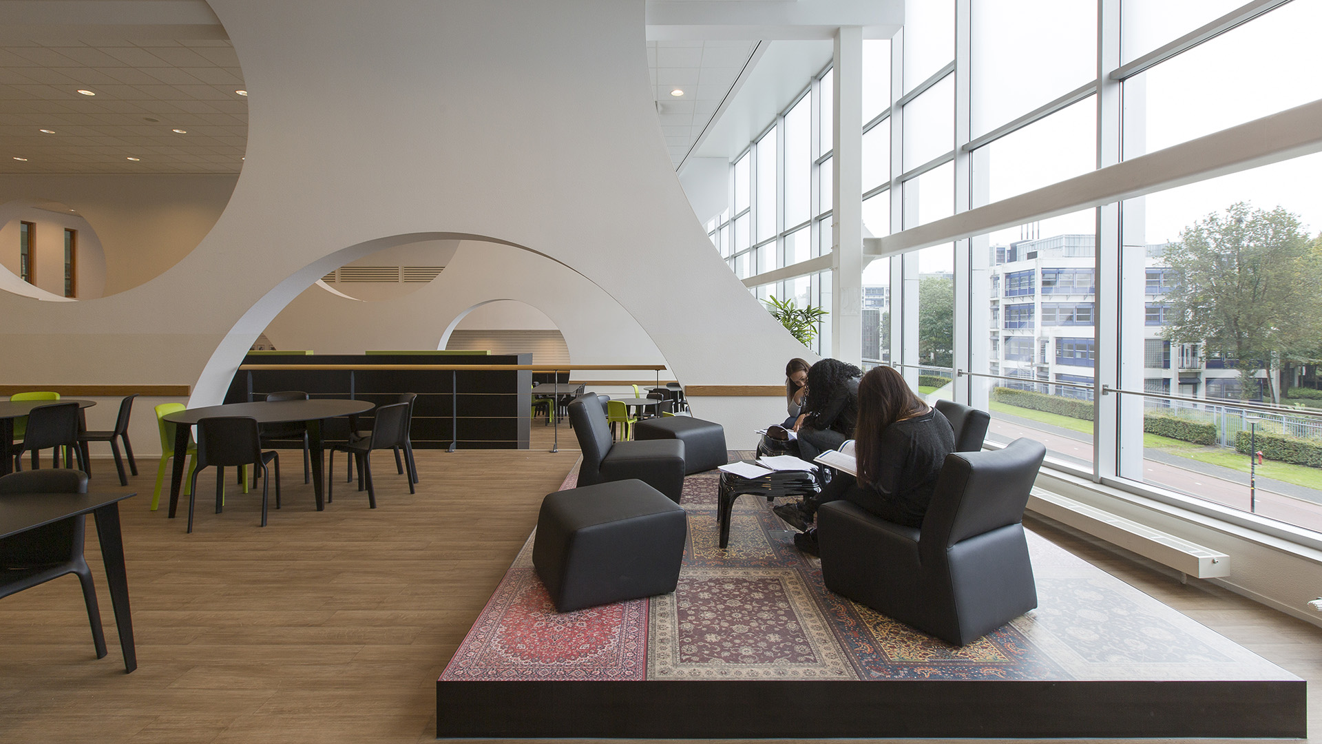 De verschillende plateaus zijn multifunctioneel en kunnen afzonderlijk van elkaar worden omgebouwd en gebruikt voor lezingen, presentaties en diploma uitreikingen. Op praktisch gebied is het aantal beschikbare stopcontacten sterk uitgebreid zodat samen met de wifi-dekking er naast extra lunchplekken ook goed uitgeruste werk- en overlegplekken zijn bijgekomen.