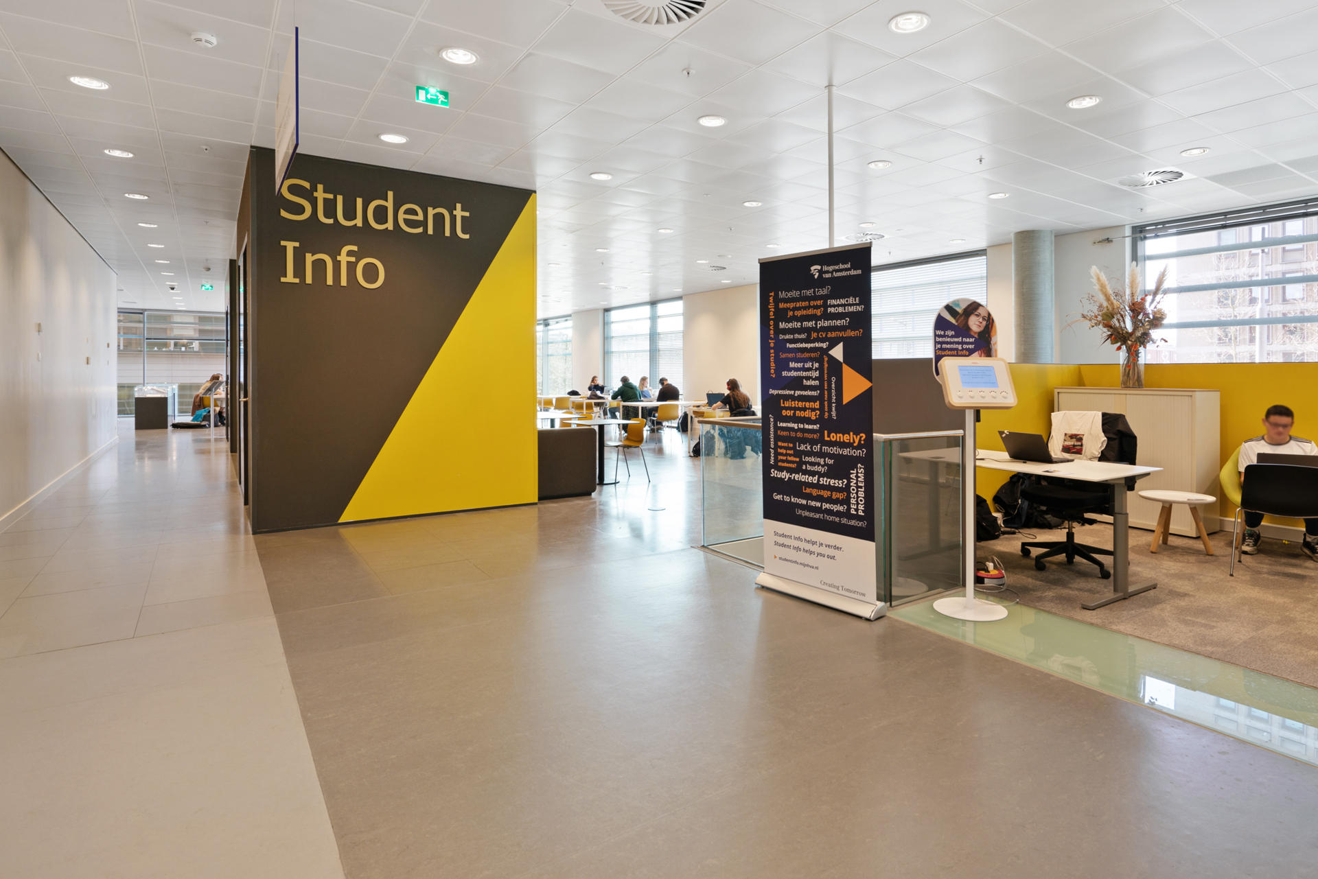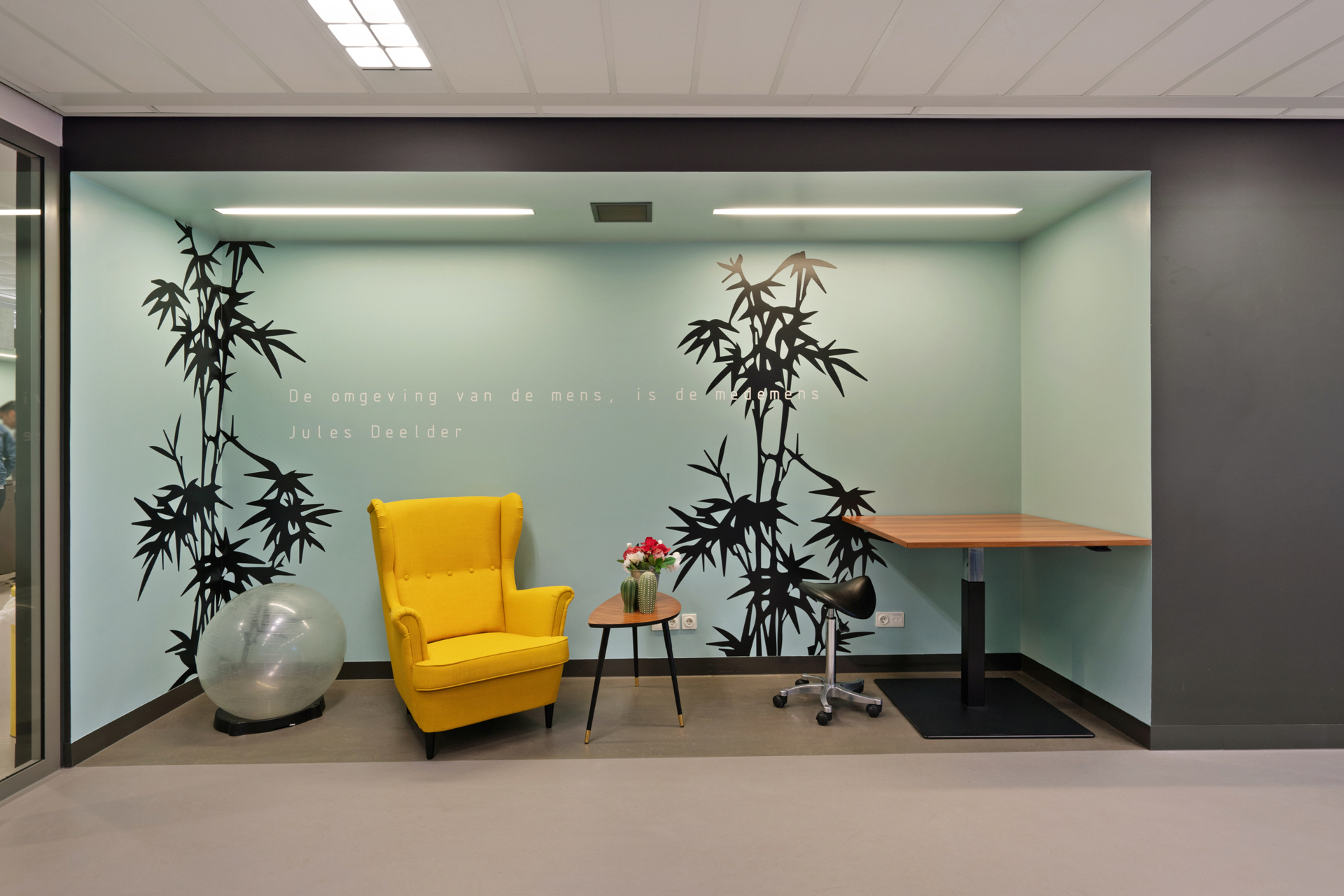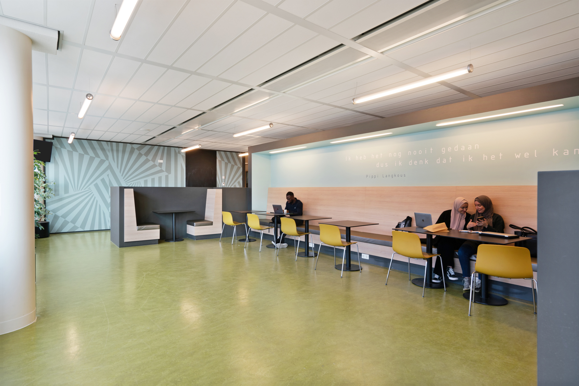 Door kleine aanpassingen aan te brengen in het nieuwe onderkomen en zorgvuldig in te zetten op geheel eigen kleuren en “graphics” voor de afdeling is er een unieke identiteit gecreëerd die naadloos aansluit op het oorspronkelijke ontwerp van het gebouw. Sfeervolle werk en ontmoetingshoekjes, gerealiseerd met hergebruikt meubilair, maken het een functioneel interieur compleet en verhogen de gebruiksvriendelijkheid.