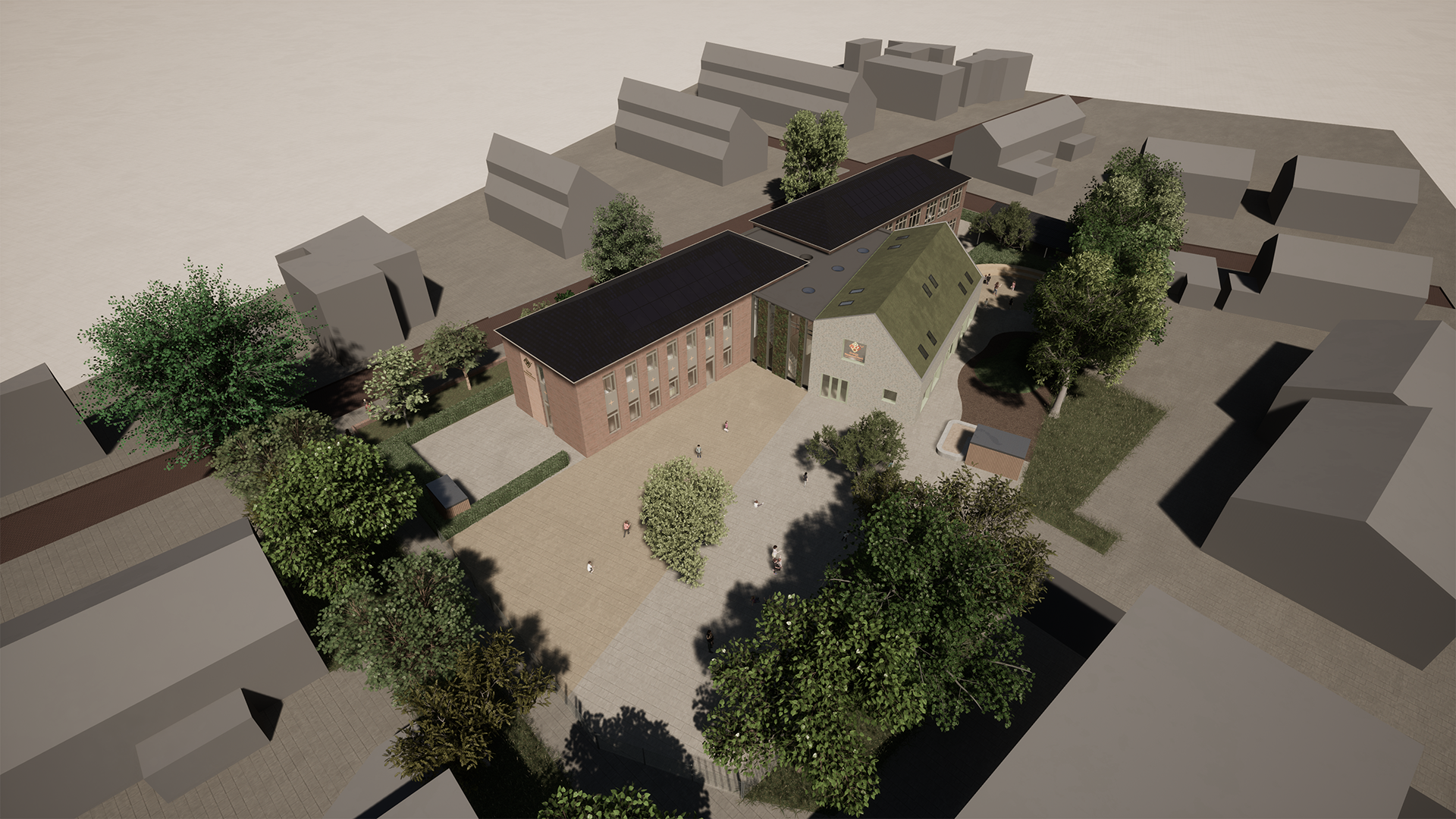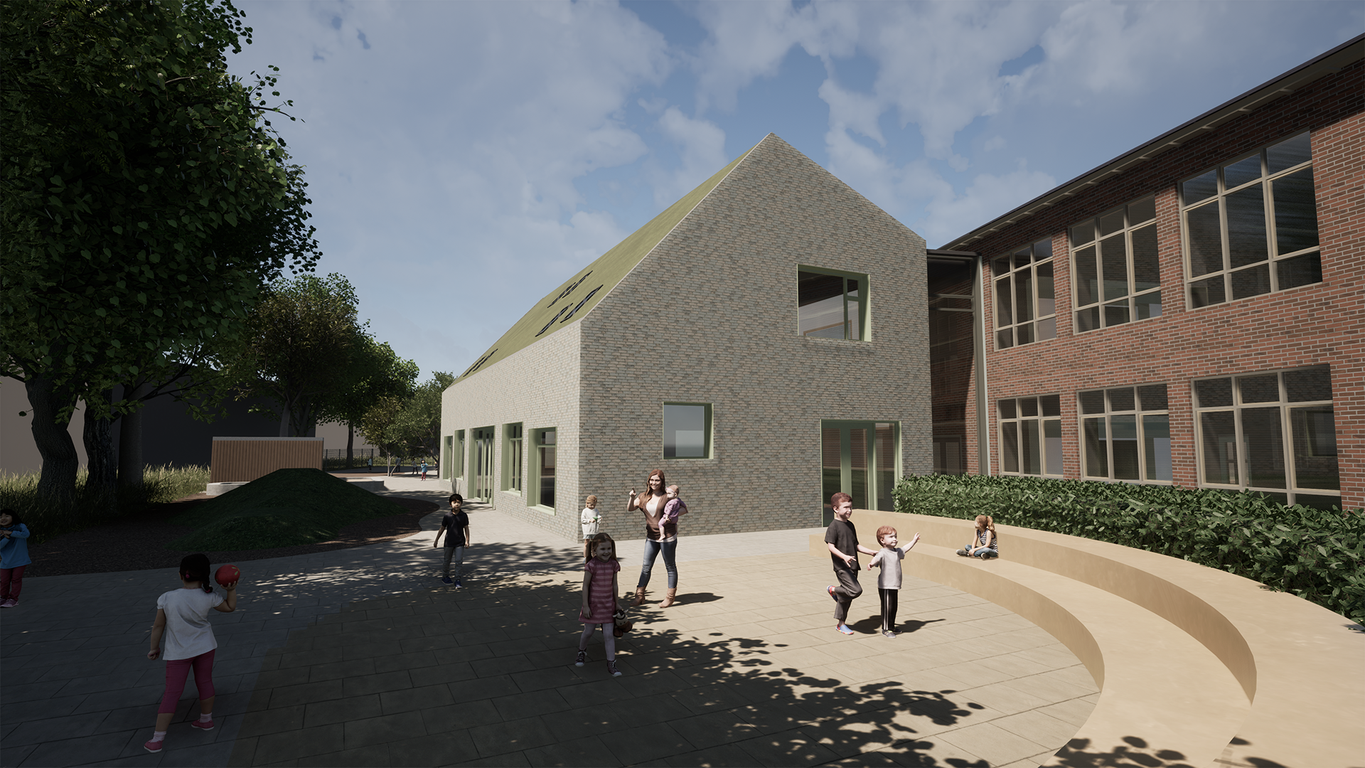Deze prijsvraag is samen met Stol Architecten gewonnen doordat we op zoek zijn gegaan naar ruimte. Ruimte tussen de organisaties, ruimte in het toekomstige gebouw en ruimte op de kavel. Door stedenbouwkundig aansluiting te zoeken bij het te renoveren gebouw aan de noordzijde ontstond er “vrije” ruimte op het perceel aan de zuidzijde. Deze benadering maakte het mogelijk open en vrij te onderzoeken hoe deze ruimte kon worden ingevuld en benut voor de samenwerking binnen het IKC. Door slim om te gaan met de positie van de groepsruimten in de gebouwen aan de Ruijterstraat konden we zones creëren van stil, naar ruis en bruis. Leerpleinen kwamen zo op gepaste afstand van de groepsruimten maar staan wel in verbinding met de speelruimte, de peuterspeelzaal en BSO.