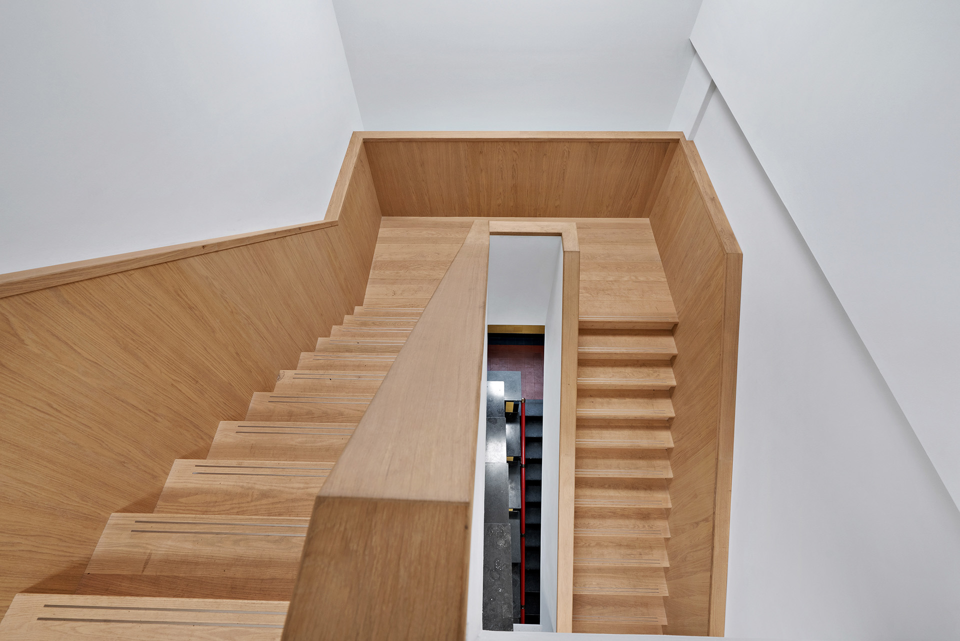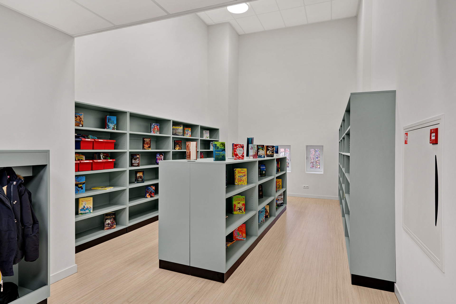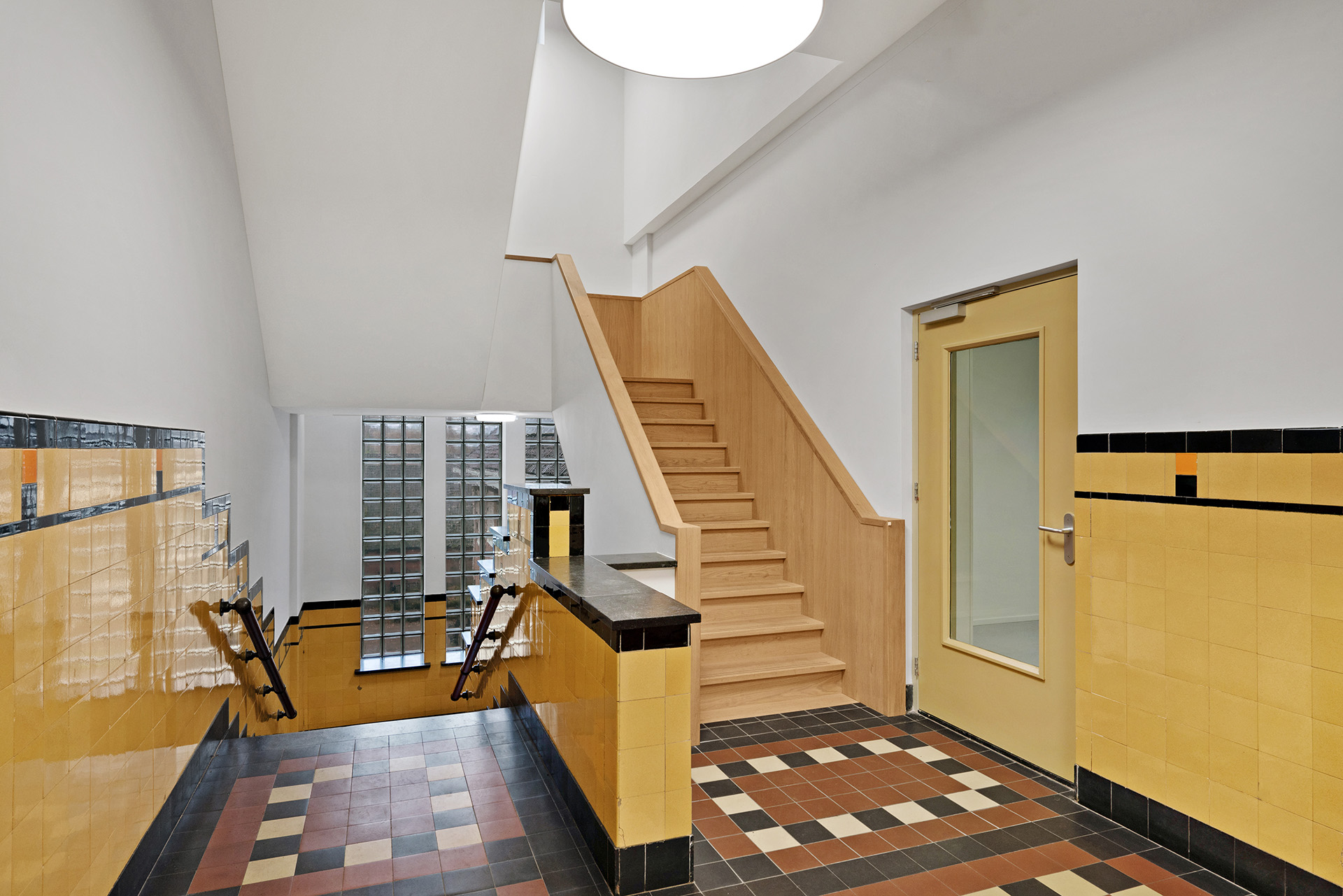 Met oog voor detail en kennis van de monumentale onderdelen hebben wij een ontwerp gemaakt waarbij delen van het centrale trappenhuis kunnen worden ingezet voor onderwijs. De opgesplitste en versleten trap is vervangen door een prachtige nieuwe eikenhouten trap. Op een zelfde wijze is ook de vluchttrap anders geplaatst. Door deze trappen slimmer te plaatsen kon de ruimte die eerder verloren ging nu gebruikt worden. Daarnaast zijn de gangen lichter gemaakt door de toiletgroepen te verplaatsen, waardoor ook de gangzones kunnen worden ingezet om in groepjes te werken.