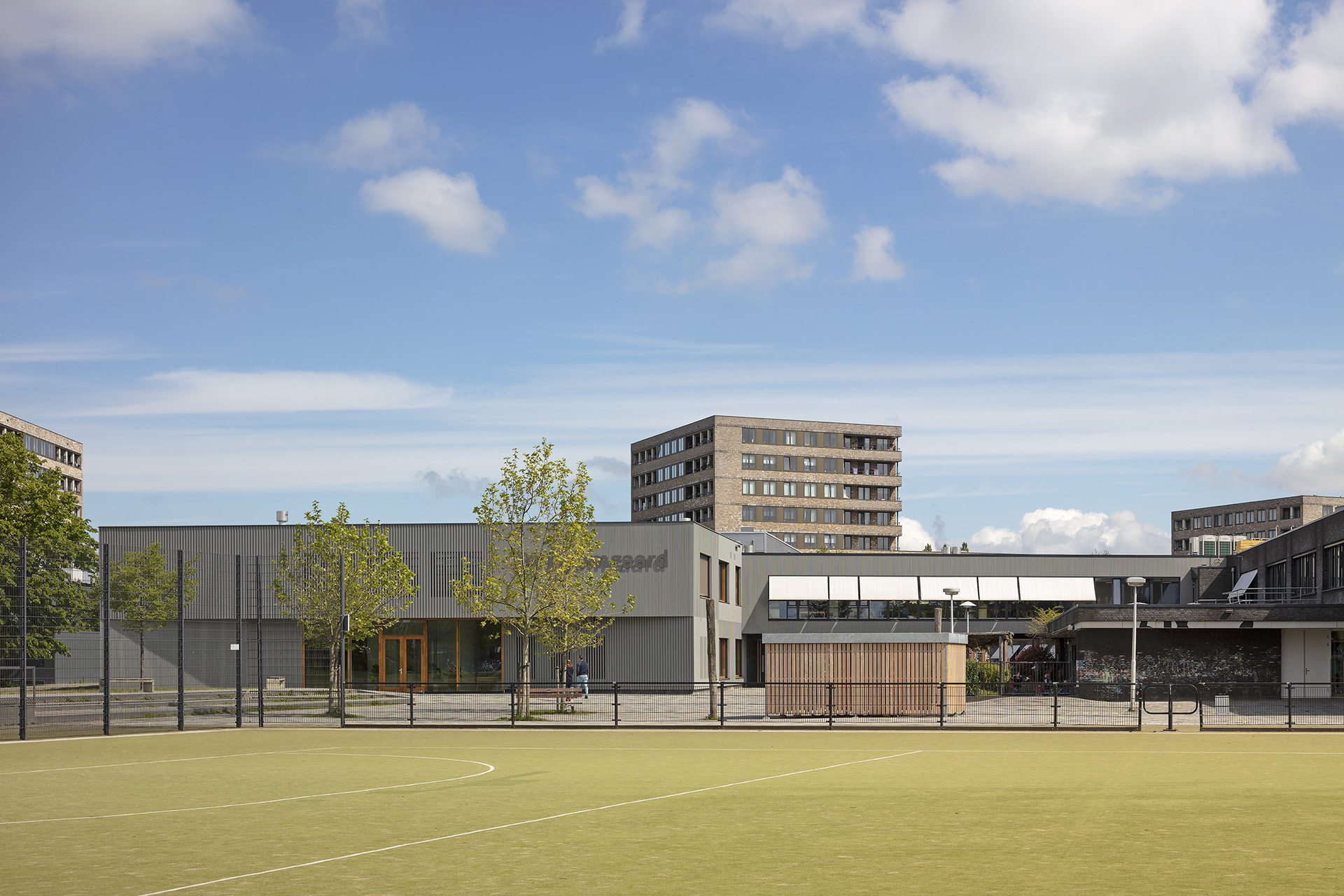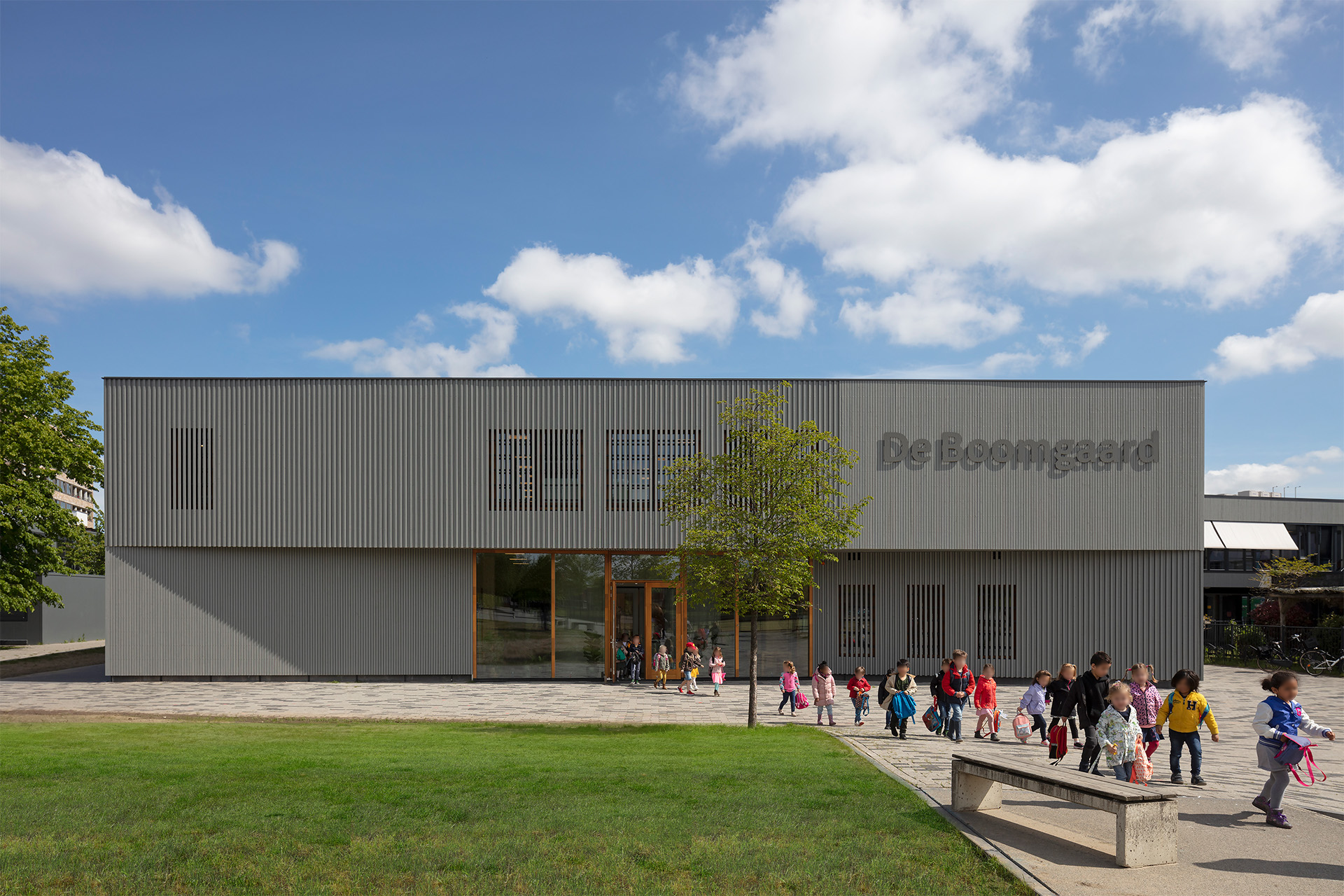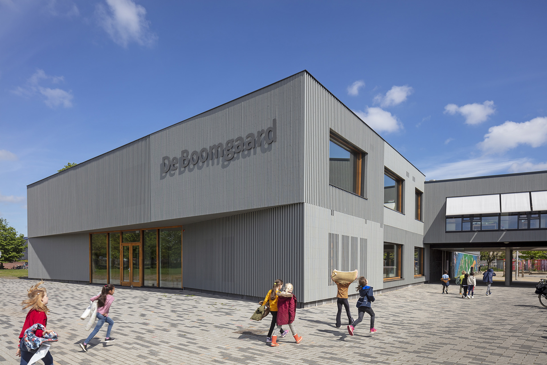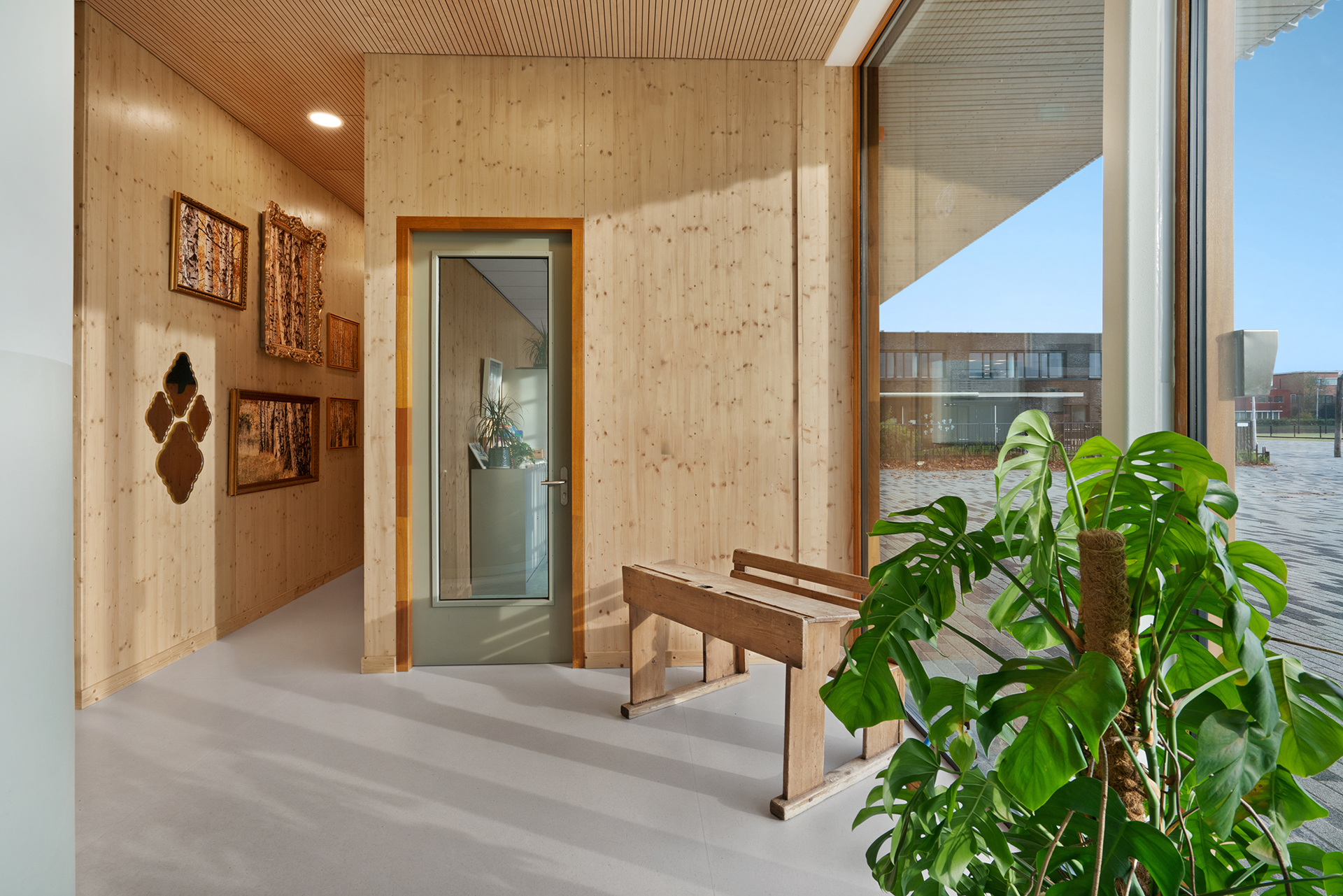 Sineth heeft deze opgave ontworpen samen met Studio Beuving. De prijsvraag is gewonnen door maximaal in te zetten op verduurzaming en circulariteit. Met name bij de nieuwbouw was het mogelijk om dit onderwerp volledig door te vertalen in het ontwerp. Dit heeft geresulteerd in een volledig houtskelet nieuwbouw welke voldoet aan frisse scholen klasse B. Bij de verbouw en transformatie is ingezet op de domeinscheiding, het beter organiseren van de ruimten ten behoeve van de onderwijsvisies en het aanpassen van de ventilatie naar frisse scholen klasse B. In de uitstraling van het project is verduurzaamd hout het herkenbare en steeds weer terugkerende materiaal. De gevel van de uitbreiding is bekleed met verdiepingshoge houten lamellen. Het gebouw is verder geïsoleerd met vlas isolatie en alle klaslokalen beschikken over één groot venster. Voor de spuiventilatie zijn er aan weerszijde luiken opgenomen die in het gevelbeeld wegvallen achter doorlopende lamellen.