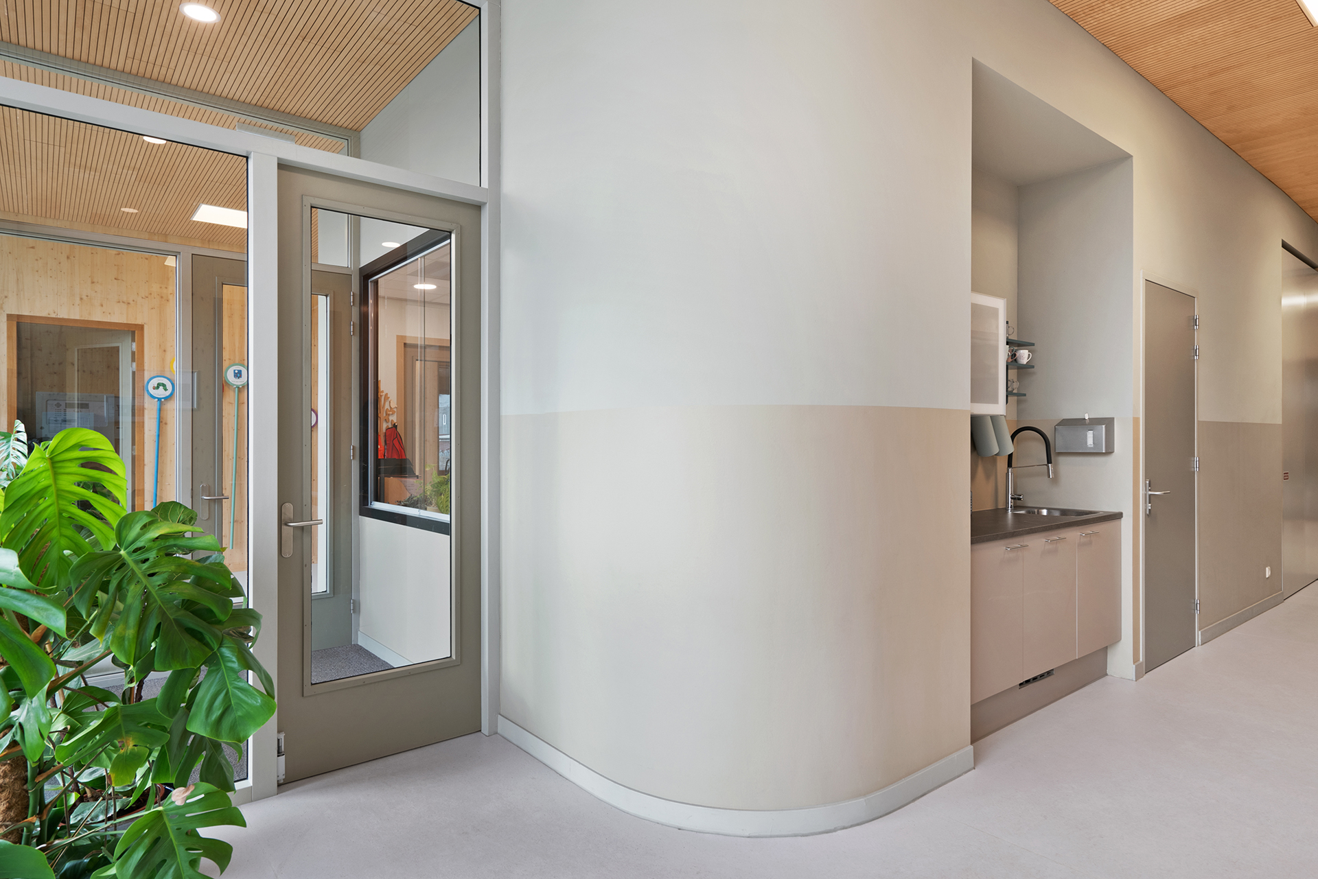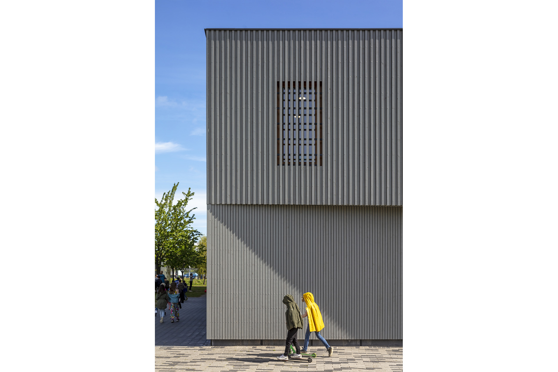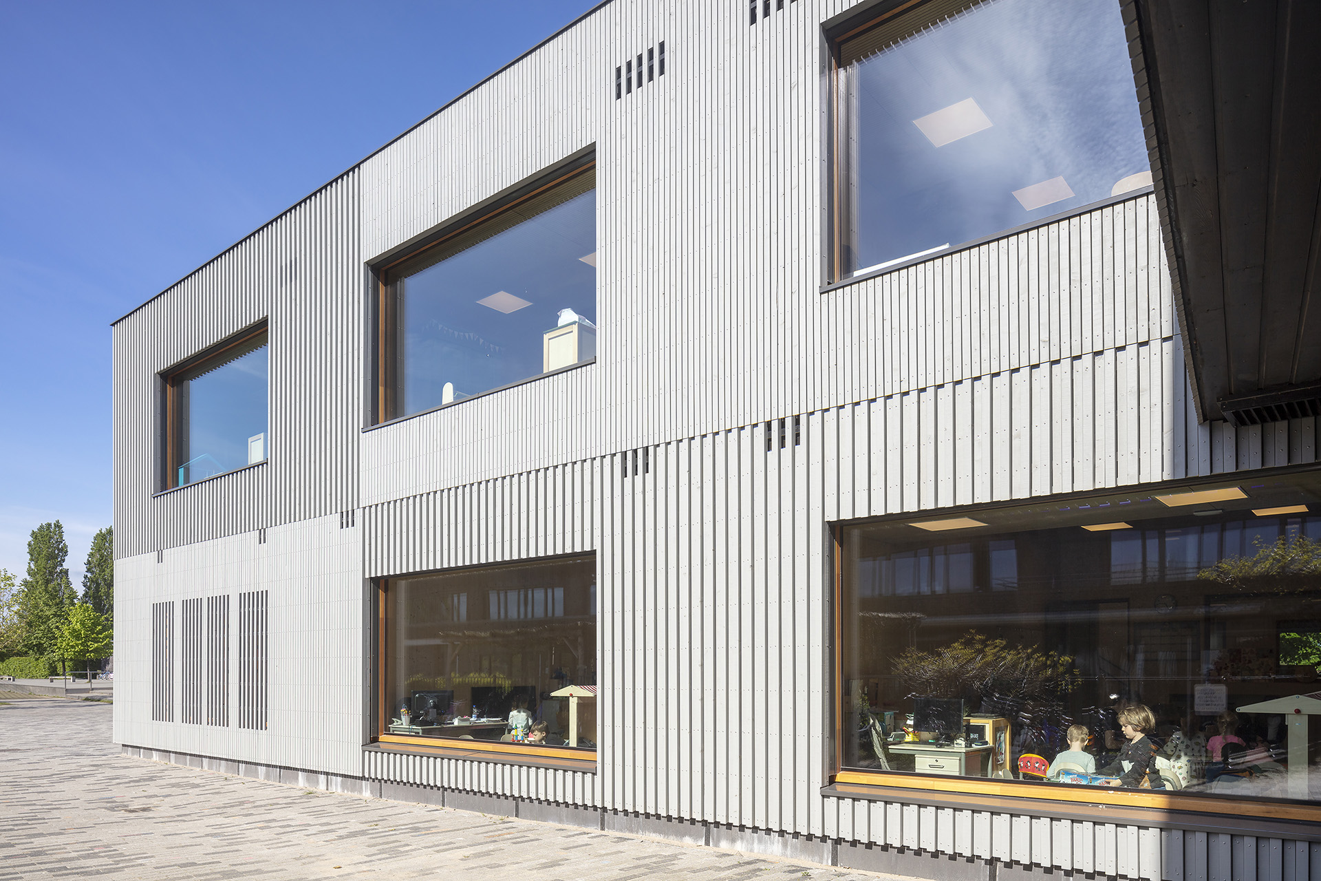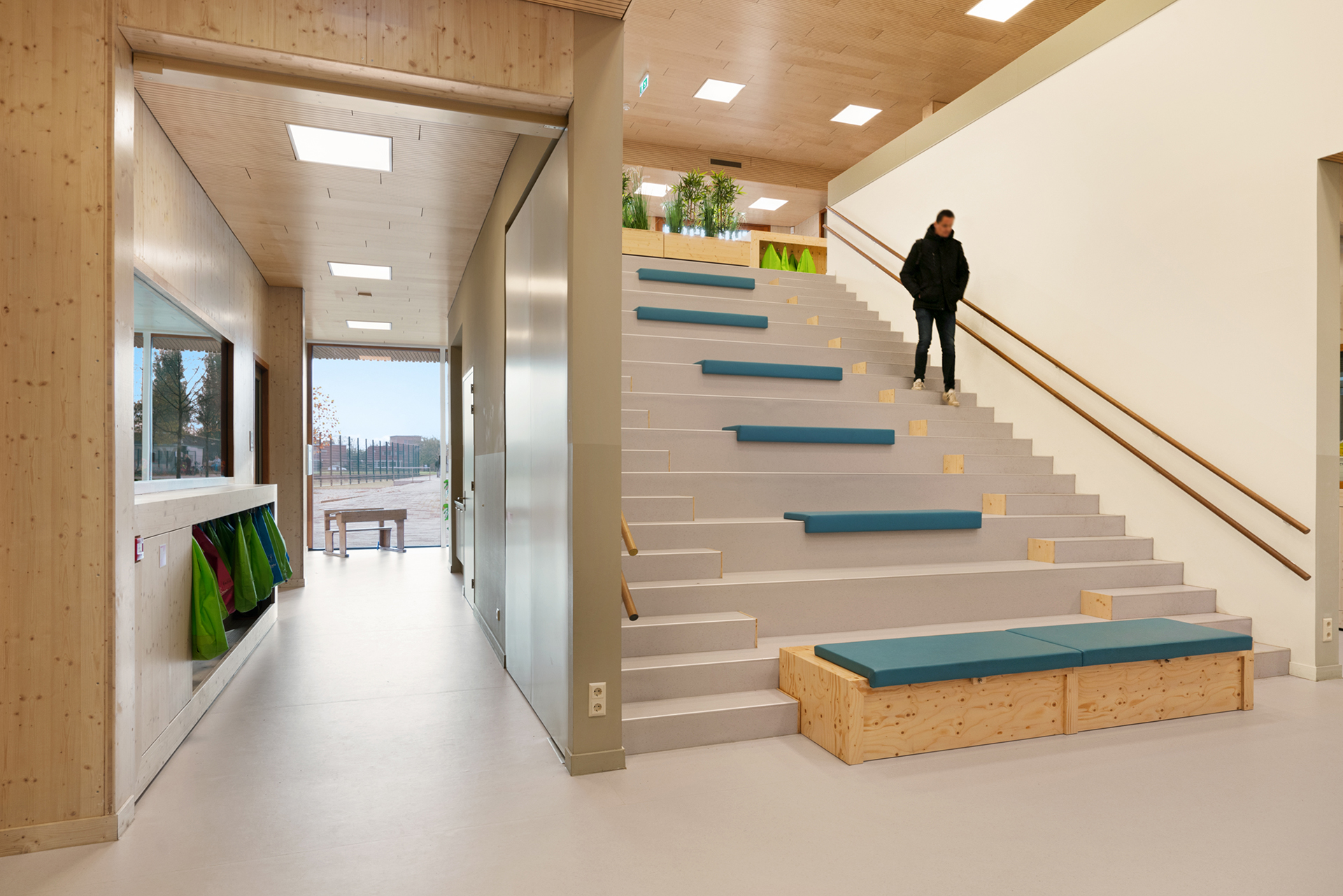 Sineth heeft deze opgave ontworpen samen met Studio Beuving. De prijsvraag is gewonnen door maximaal in te zetten op verduurzaming en circulariteit. Met name bij de nieuwbouw was het mogelijk om dit onderwerp volledig door te vertalen in het ontwerp. Dit heeft geresulteerd in een volledig houtskelet nieuwbouw welke voldoet aan frisse scholen klasse B. Bij de verbouw en transformatie is ingezet op de domeinscheiding, het beter organiseren van de ruimten ten behoeve van de onderwijsvisies en het aanpassen van de ventilatie naar frisse scholen klasse B. In de uitstraling van het project is verduurzaamd hout het herkenbare en steeds weer terugkerende materiaal. De gevel van de uitbreiding is bekleed met verdiepingshoge houten lamellen. Het gebouw is verder geïsoleerd met vlas isolatie en alle klaslokalen beschikken over één groot venster. Voor de spuiventilatie zijn er aan weerszijde luiken opgenomen die in het gevelbeeld wegvallen achter doorlopende lamellen.