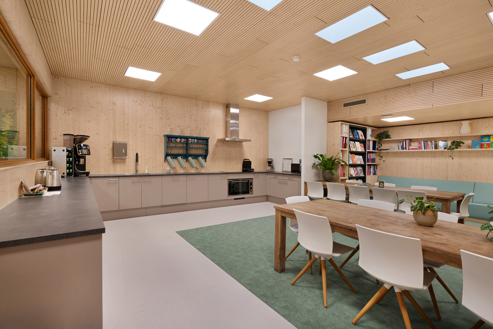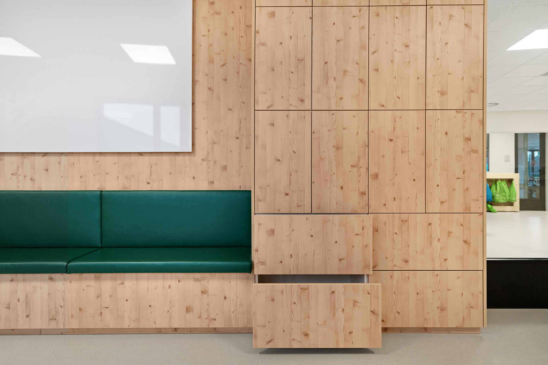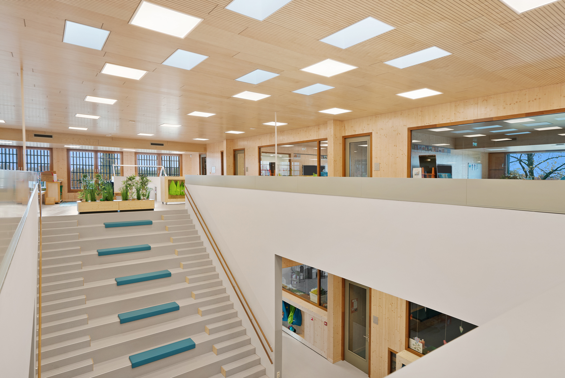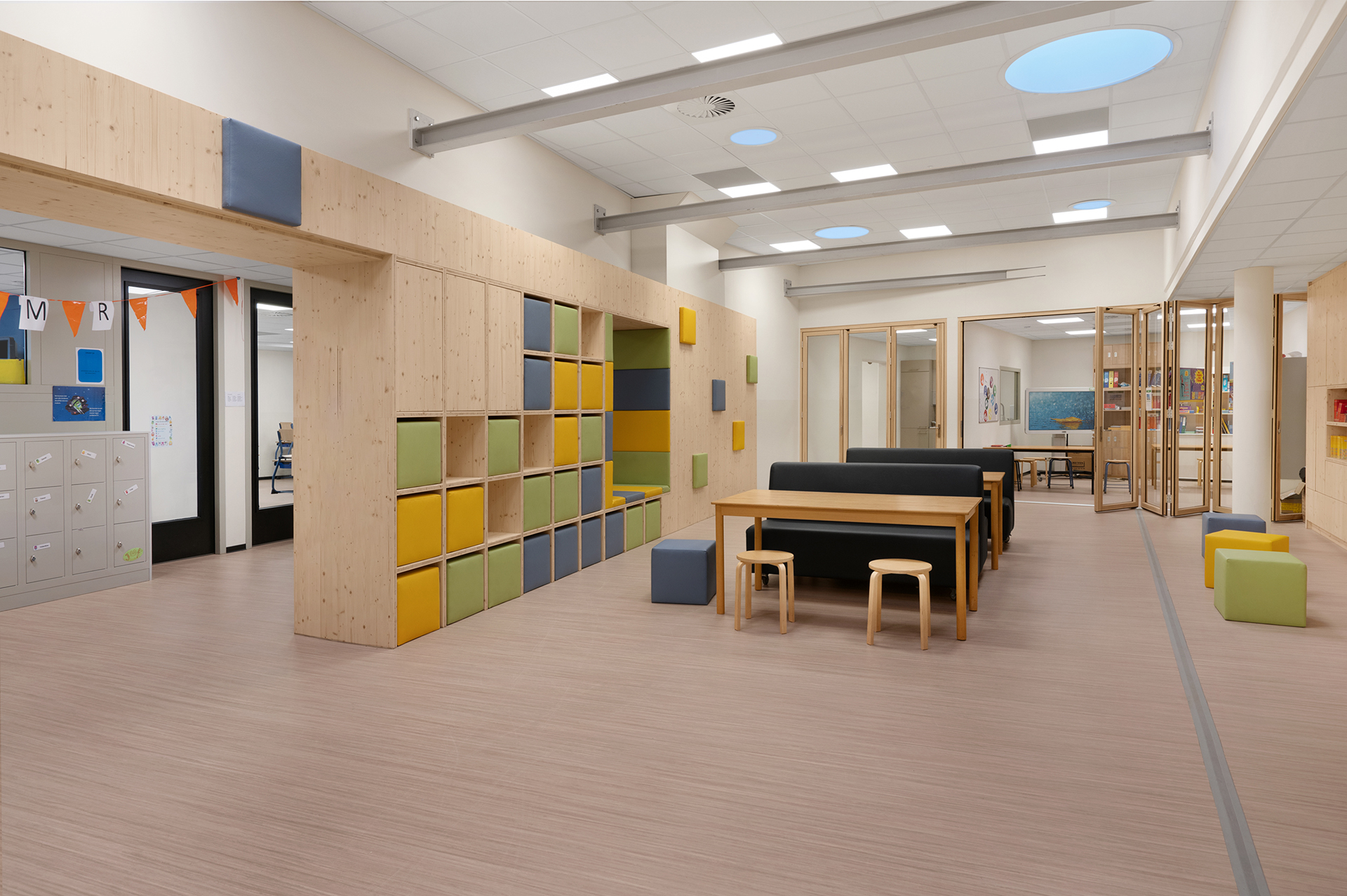 Sineth heeft deze opgave ontworpen samen met Studio Beuving. De prijsvraag is gewonnen door maximaal in te zetten op verduurzaming en circulariteit. Met name bij de nieuwbouw was het mogelijk om dit onderwerp volledig door te vertalen in het ontwerp. Dit heeft geresulteerd in een volledig houtskelet nieuwbouw welke voldoet aan frisse scholen klasse B. Bij de verbouw en transformatie is ingezet op de domeinscheiding, het beter organiseren van de ruimten ten behoeve van de onderwijsvisies en het aanpassen van de ventilatie naar frisse scholen klasse B. In de uitstraling van het project is verduurzaamd hout het herkenbare en steeds weer terugkerende materiaal. De gevel van de uitbreiding is bekleed met verdiepingshoge houten lamellen. Het gebouw is verder geïsoleerd met vlas isolatie en alle klaslokalen beschikken over één groot venster. Voor de spuiventilatie zijn er aan weerszijde luiken opgenomen die in het gevelbeeld wegvallen achter doorlopende lamellen.