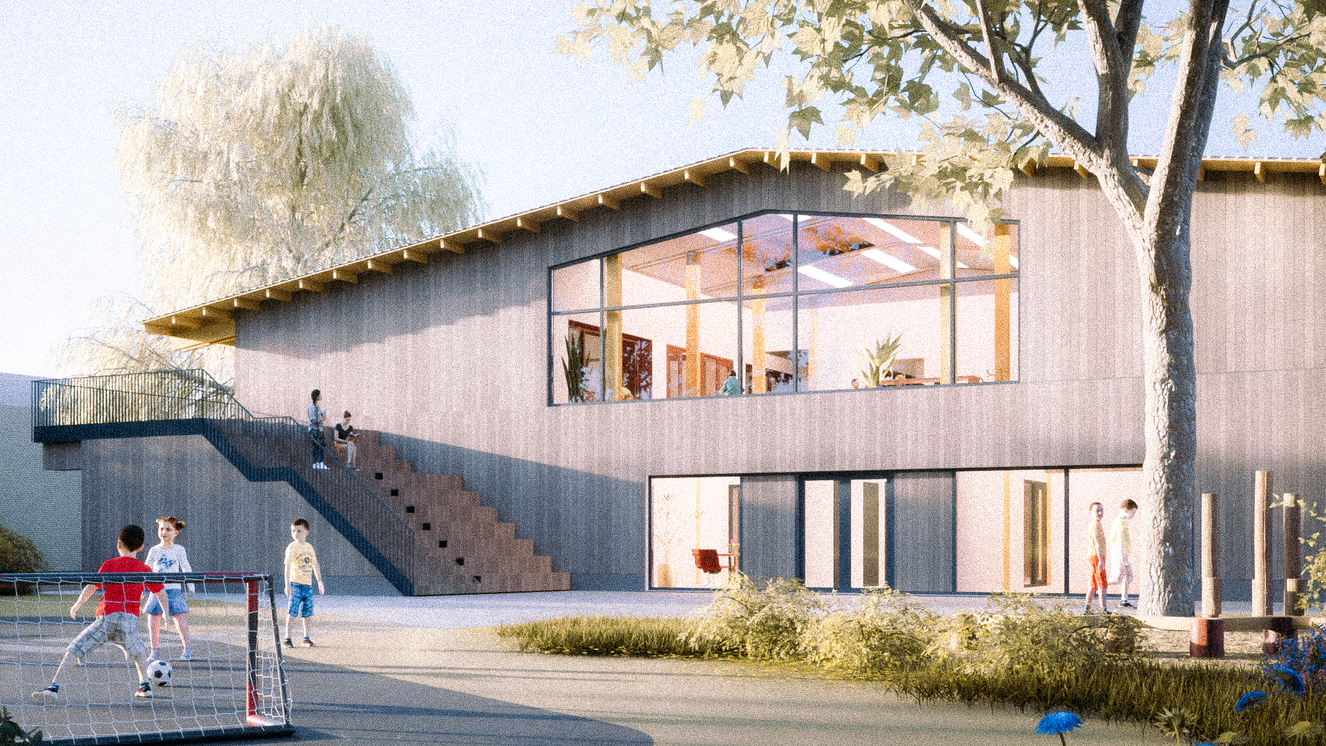 Het ontwerp van Architectuur MAKEN heeft nadrukkelijke aandacht voor duurzaamheid en energiegebruik. Door het gebouw compact te houden ontstaat niet alleen een efficiënt gebouw maar blijft er ook zoveel mogelijk buitenruimte over voor de kinderen om te spelen. Het zadeldak en de materialisering zorgen voor een vriendelijke inpassing in de wijk, een belangrijk uitganspunt tijdens de ontwerpfase.