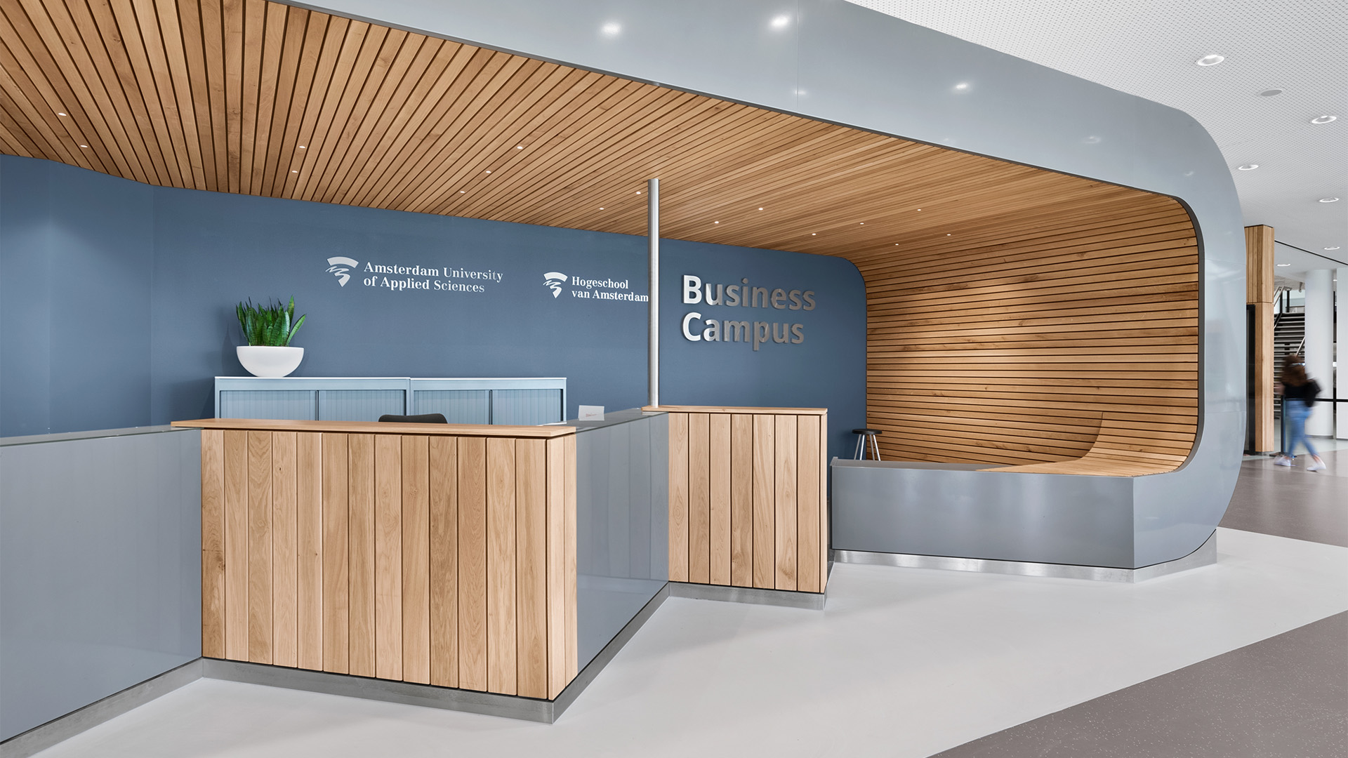 Na twee intensieve jaren van ontwerpen, plannen en verbouwen was het vorige week zo ver; de officiële opening van de Business Campus in Amsterdam Zuidoost. Binnen dit project hebben wij voor de Hogeschool van Amsterdam een grootschalige interne verbouwing ontworpen en gerealiseerd waarbij alle opleidingen van de faculteit Business en Economie weer samen komen onder één dak.